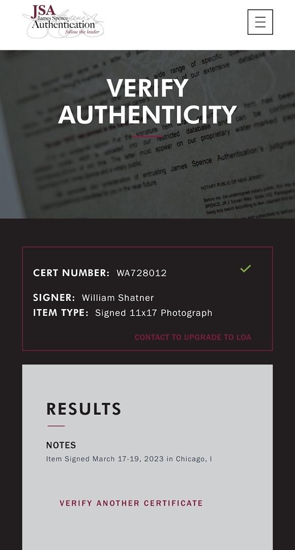 Celebrate the legacy of Captain Kirk with this striking 16x20 photo signed by William Shatner. Authenticated by JSA, this collectible captures the iconic Star Trek hero in vivid detail, making it a bold centerpiece for any fan’s collection. Own a piece of sci-fi history that commands attention and sparks conversation.