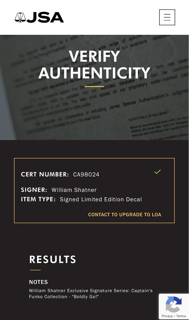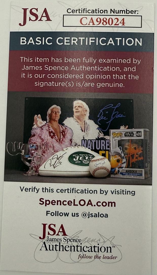 Add a legendary piece to your Star Trek collection with this William Shatner signed Funko Pop #1136 Limited Edition Captain Kirk. Authenticated by a JSA Certificate of Authenticity, this rare collectible offers genuine value and a personal connection to the iconic captain. Perfect for fans and collectors, it’s a standout addition that celebrates the enduring legacy of Star Trek’s beloved leader. Don’t miss the chance to own this exclusive signed Funko Pop.