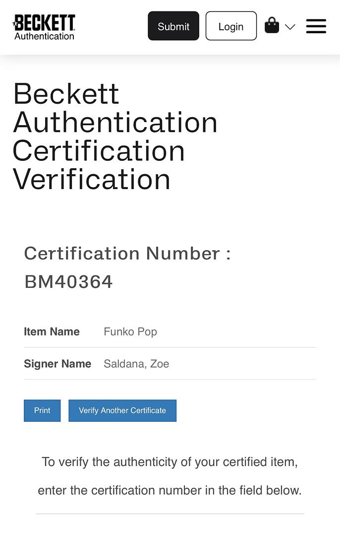 Celebrate your fandom with this Zoe Saldana signed Funko Pop #1550 "Neytiri" from Avatar. Authenticated by Beckett Certificate of Authenticity, this collectible captures the iconic character with vibrant detail. Perfect for display or gifting, it’s a unique treasure for any Avatar enthusiast looking to own a piece of cinematic history.